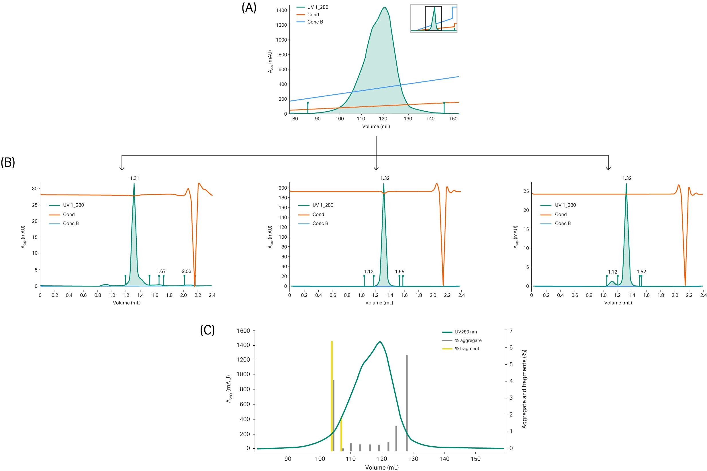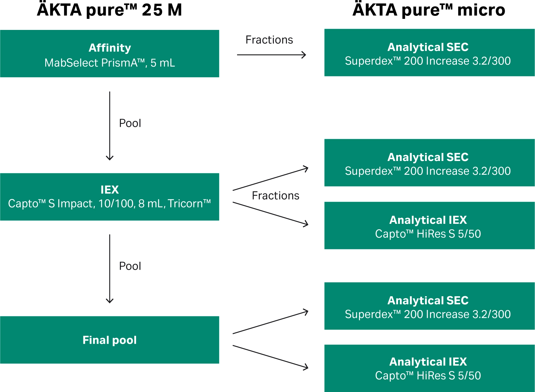 - Information obtained from analytical SEC and IEX, can guide a user to an optimal pooling strategy to achieve a pure sample with reduced levels of aggregates, fragments, and charged variants.