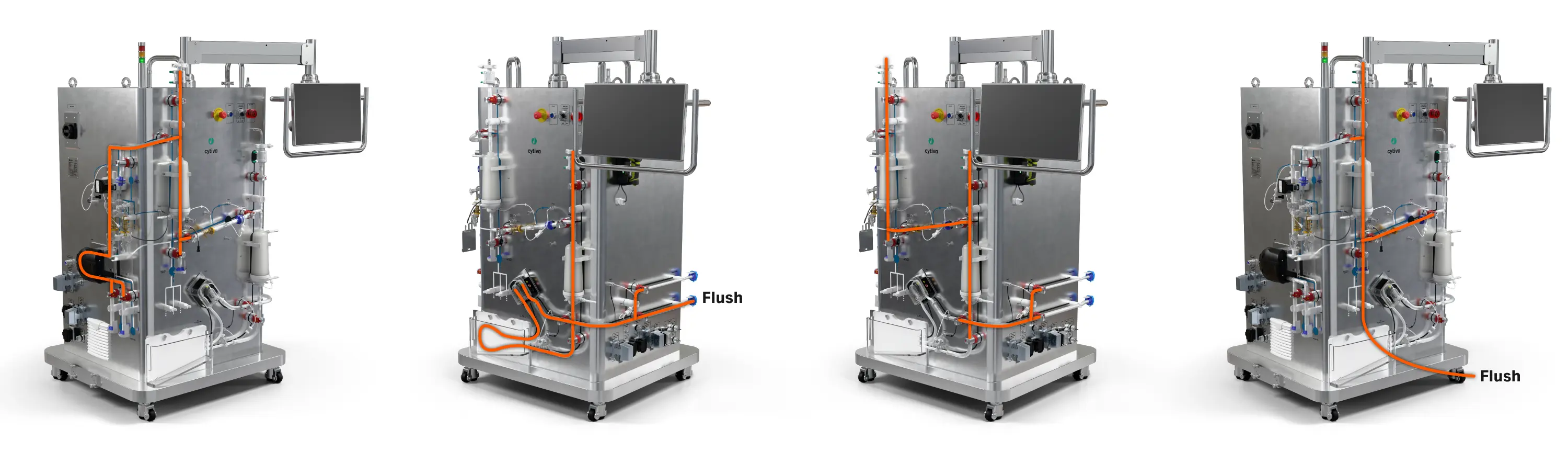 - Leak test 2: Covers the flow path from filter position 2 to the recovery bag and the filter 2 flush bag. This is a SUS leak test which checks potential leakage of the connected 2D bags and flow kit tubing.