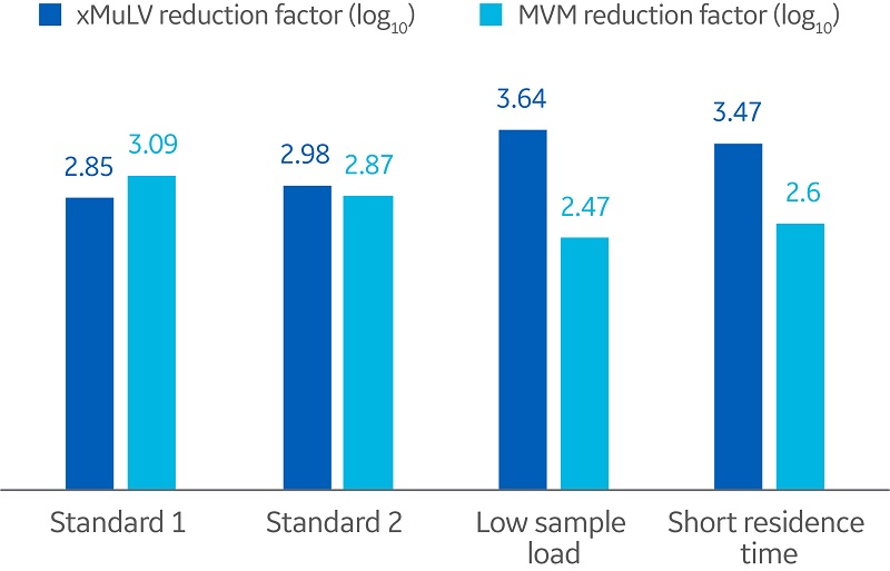 Overall, the reduction factors observed in this study were within the typical range found for protein A resins. This demonstrates expected virus removal and a robust process even when sample load and residence time are varied.