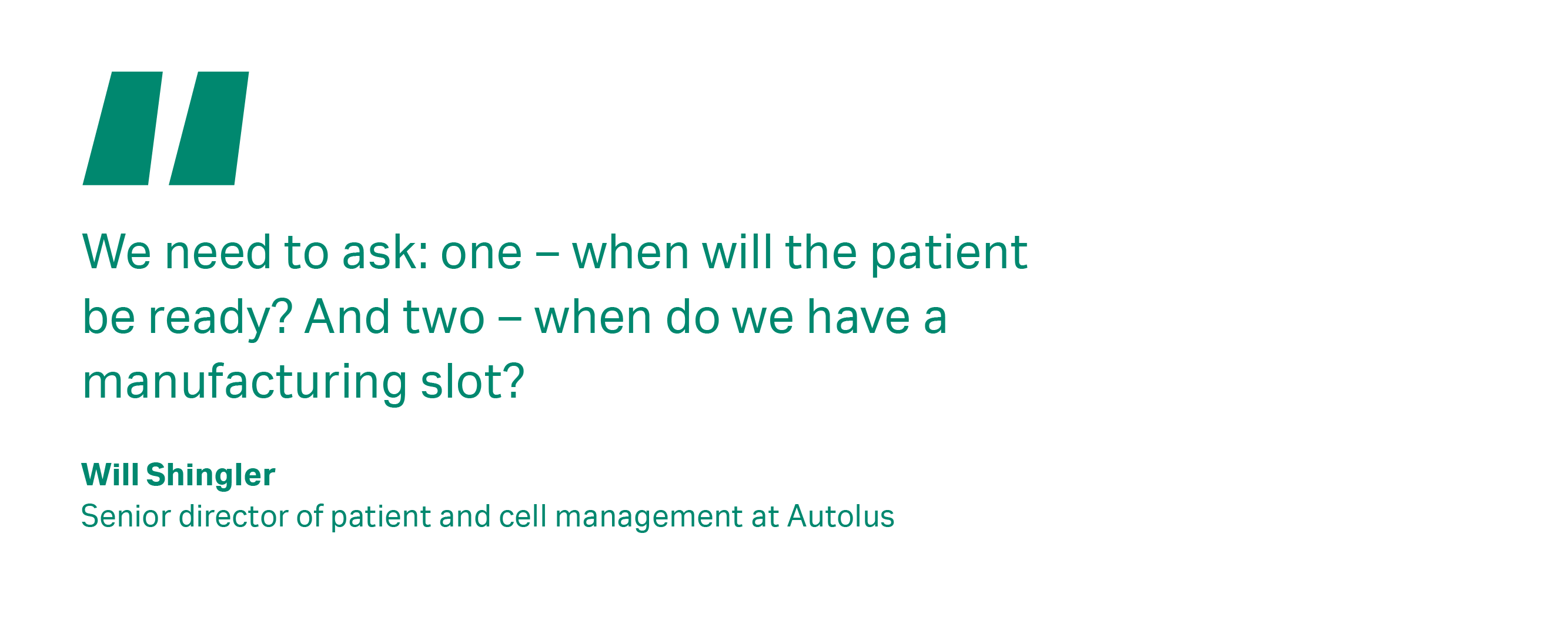 While this may sound straightforward, patient scheduling can be logistically challenging. A high degree of coordination between multiple touch points (clinical sites, manufacturers, cryopreservation facilities, couriers, etc.), often involving large amounts of manual administration, is required. Will highlights that “The biggest piece from a logistics standpoint is making sure that we understand when that patient will be ready for apheresis. This will need to be aligned with the manufacturing side and careful coordination between the clinic and the manufacturers is essential. Basically, we need to ask: one – when will the patient be ready? And two – when do we have a manufacturing slot?”