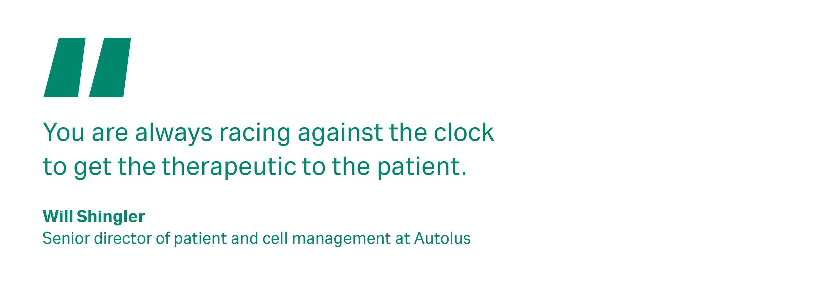 Delays not only complicate logistics but, ultimately, they may have potentially catastrophic impacts on vulnerable patients. Will explains, “With an autologous cell journey you've got a sick patient waiting for treatment and so you want to minimize the cell journey from the point of patient identification or cell acquisition through to reinfusion of the product. And that obviously means there's some significant urgency in your logistics, which doesn't leave a lot of room for error. Any kind of slack that you build into the system is potentially viewed as detrimental. Essentially, you are always racing against the clock to get the therapeutic to the patient.”