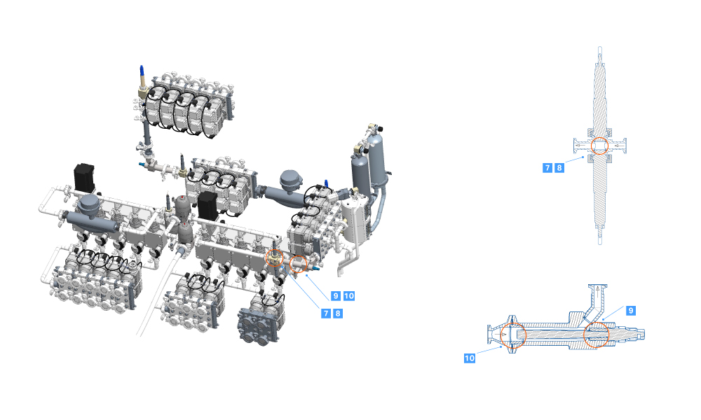 8 Pressure sensors, vertical Tip of pressure sensor, directed downward. Test method 3 swab test  23 Conductivity sensor, horizontal  O-ring on conductivity sensor.  Test method 3 swab test
