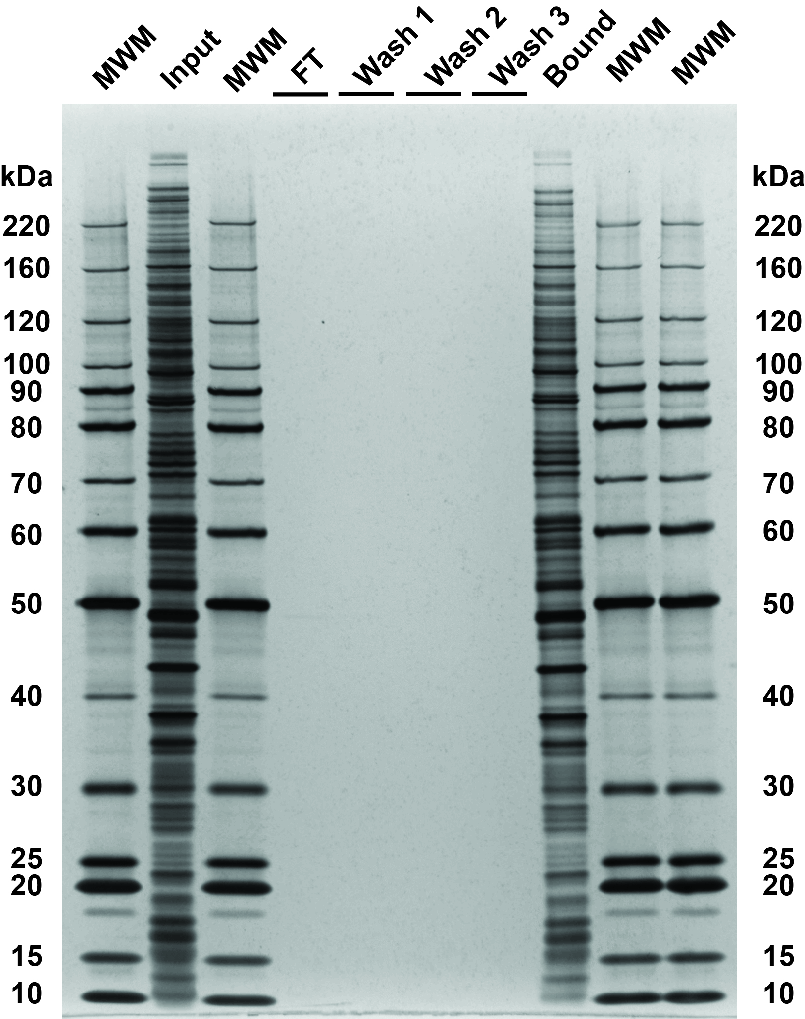 - 4.7.1 Save a 1 μg aliquot of supernatant as the “flow-through” fraction and freeze it at -80°C for quality control by SDS-PAGE and silver staining.