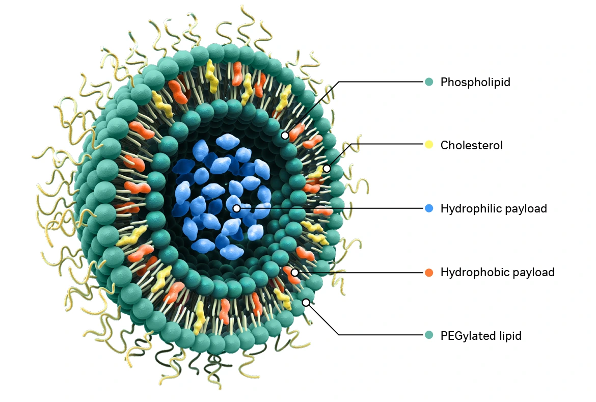 More than 15 liposomal drug and vaccine formulations are on the market for indications such as cancer, fungal infections, macular degeneration, and pain management. Liposomes are also being studied in clinical, preclinical, and basic research, including for applications such as: