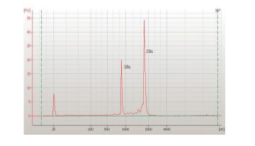 Fig 4. Examples of downstream analyses with TriplePrep. A) Genomic DNA from 1 million HeLa cells evaluated using 0.8% agarose get electrophoresis. B) Total RNA from 10 mg rat liver evaluated using the AgilentTM 2100 bioanalyzer showing high-quality RNA (RIN: 9.8). C) Total protein from 10 mg rat liver evaluated using 2-D DIGE. Overlaid image of TriplePrep (yellow) and reference gel (red), showing more spots are detected with TriplePrep (green spots).