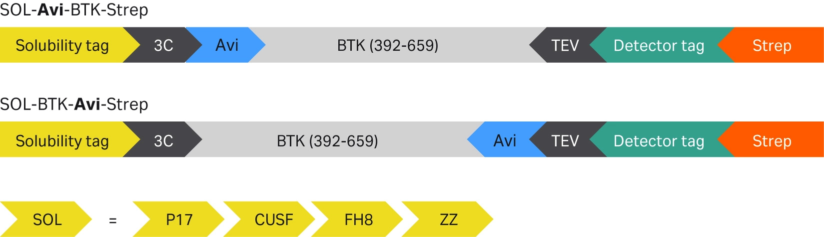 (A) Avi-tag BTK392-659 eGene™ construct design