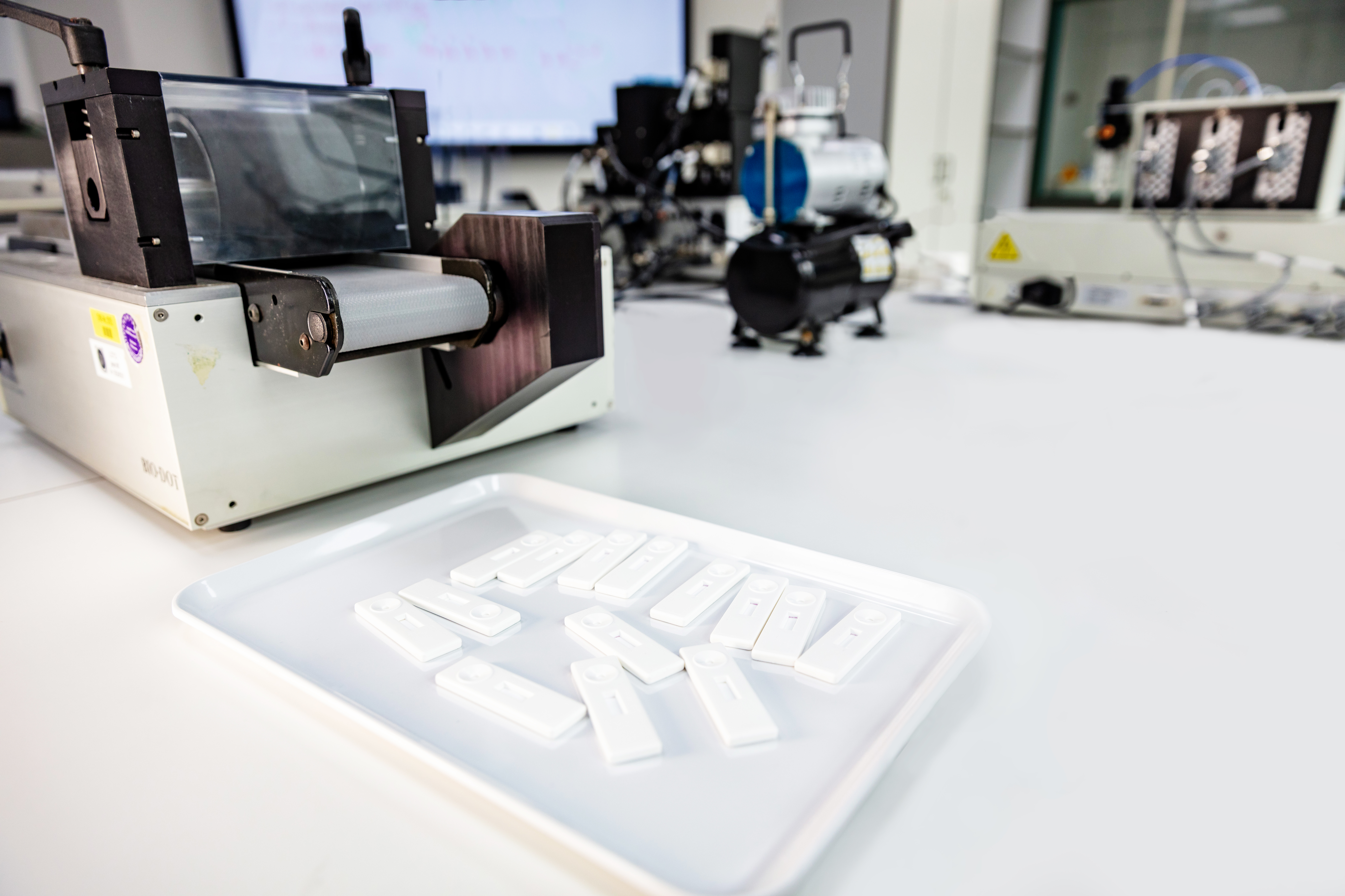 Davis compared manufacturing a lateral-flow test with one aspect of making a car. Parts are brought in at the right time and in the right order to make the car. “Obviously, a lateral-flow test is not as complicated as that,” explained Davis, “but it’s still true that you need to get your materials in time with the right cost and the right specification. You need to be able to trust that specification. You need to know that when you’re putting everything together, all of the parts that come together are made by people that know what they’re doing and can provide an affordable, relevant service according to strict manufacturing procedures. There’s no room for error.”