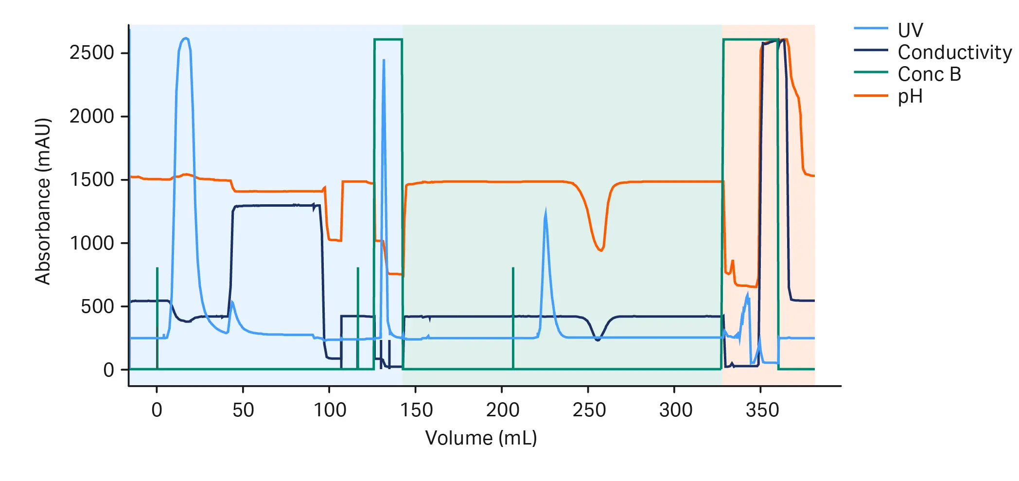- UV, conductivity, and pH traces showed high reproducibility