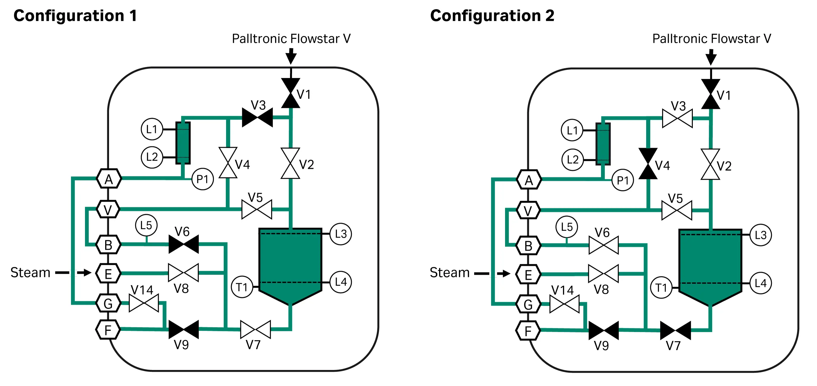 Fig 1. The AquaWIT V system sanitization loop alternates between configuration 1 and configuration 2.