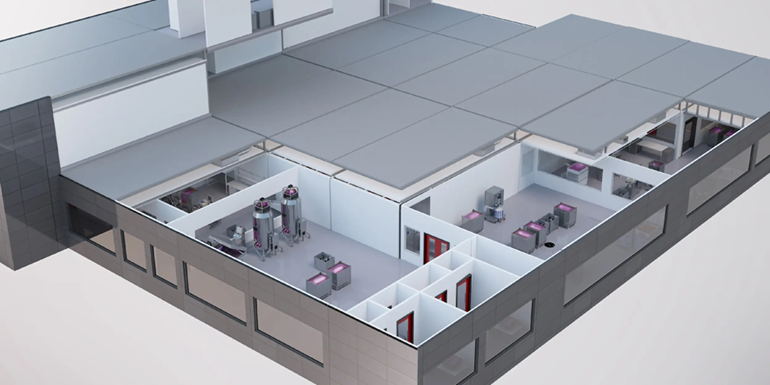 Overhead view of a therapeutic manufacturing facility
